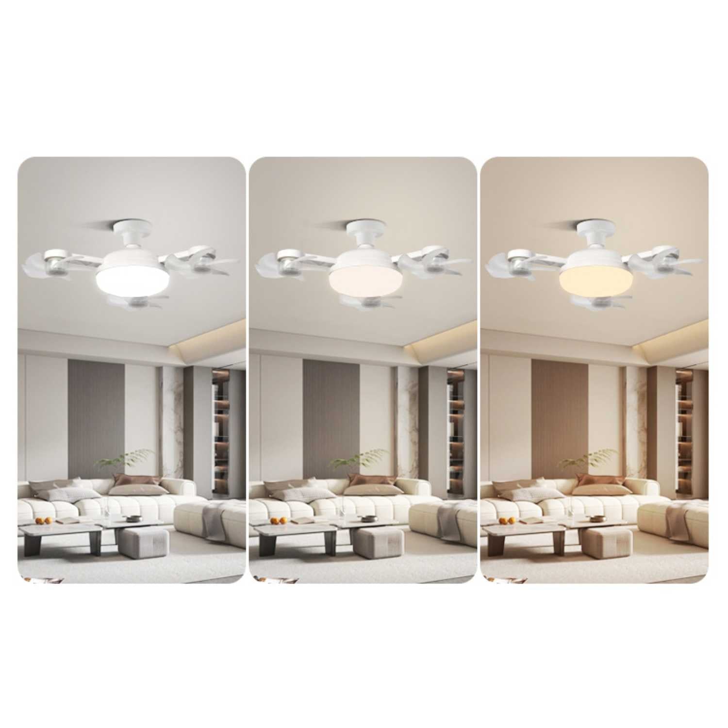 Dzięki praktycznemu pilotowi AeroGlow™ Lampa Wentylatorowa możesz łatwo regulować zarówno wentylator, jak i oświetlenie. Łatwo wybierz między białym, normalnym a ciepłym światłem, aby stworzyć idealną atmosferę w każdym pomieszczeniu. Dzięki temu masz zawsze pełną kontrolę nad swoim komfortem i atmosferą, nie wstając z miejsca.