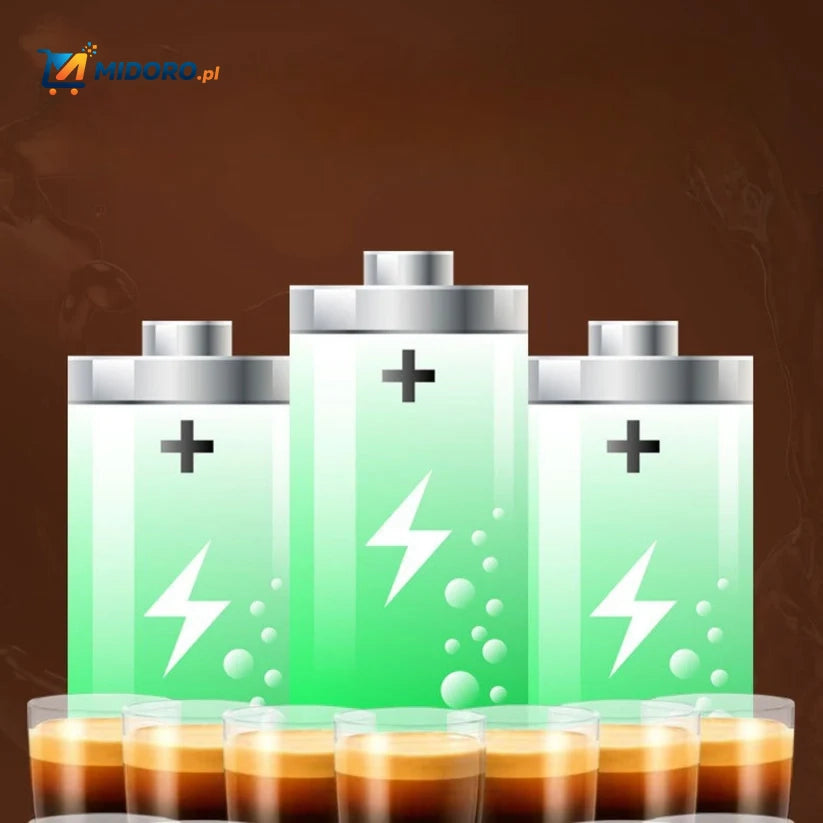 Bateria działa nawet do 12 godzin, dzięki czemu możesz przygotować kilka filiżanek kawy, zanim będziesz musiał ją naładować.