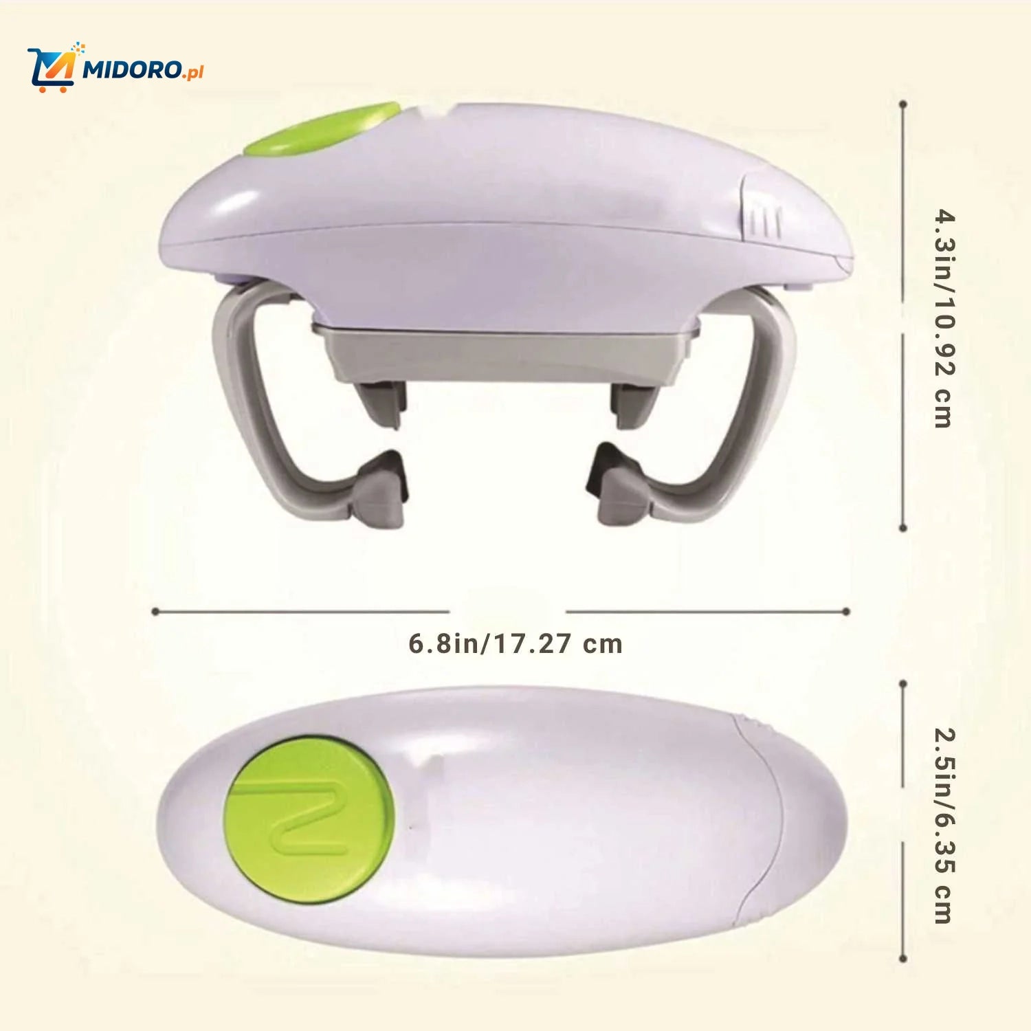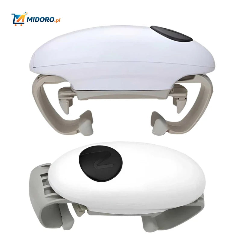 Wykonany z wytrzymałego plastiku o eleganckim i kompaktowym designie o wymiarach zaledwie 20×10.5×7.5 cm, otwieracz bez trudu zmieści się w każdej szufladzie lub szafce kuchennej. Działa na baterie, jest bezpieczny w użyciu i zaprojektowany, aby służyć przez wiele lat – niezawodna pomoc dla młodych i starszych.