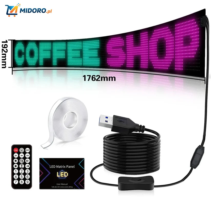 Wyświetlacz jest łatwy w obsłudze za pomocą darmowej aplikacji na smartfona przez Bluetooth, dzięki czemu zawsze możesz dostosować swoje reklamy.