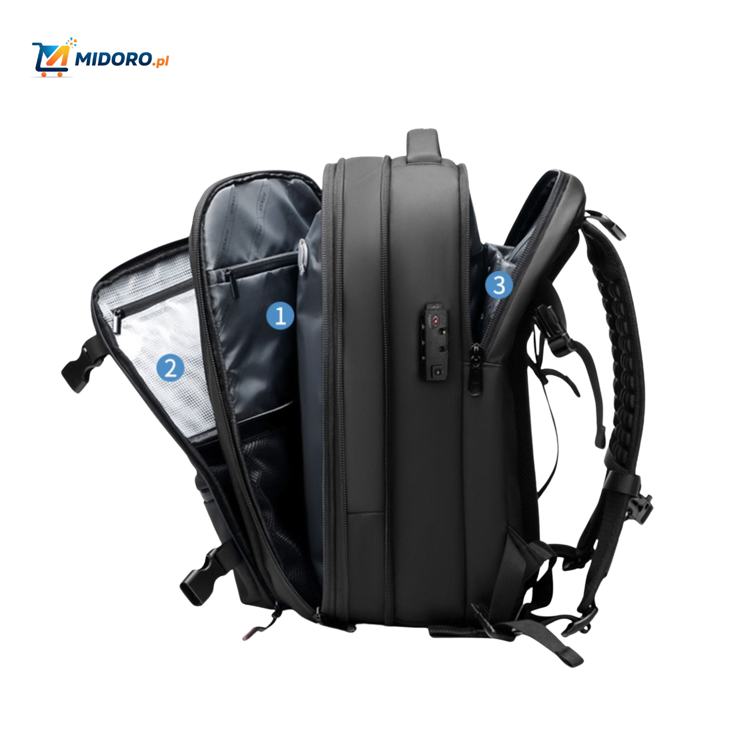 Funkcjonalność: Różne kieszenie na akcesoria i niezbędne rzeczy podróżne.